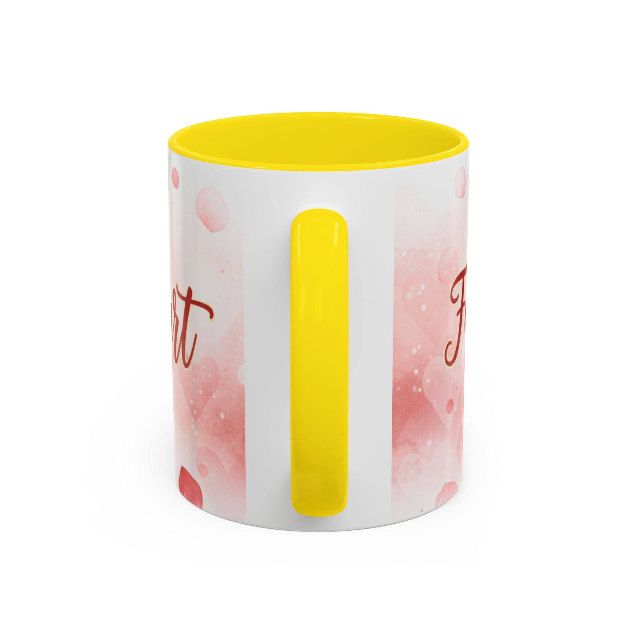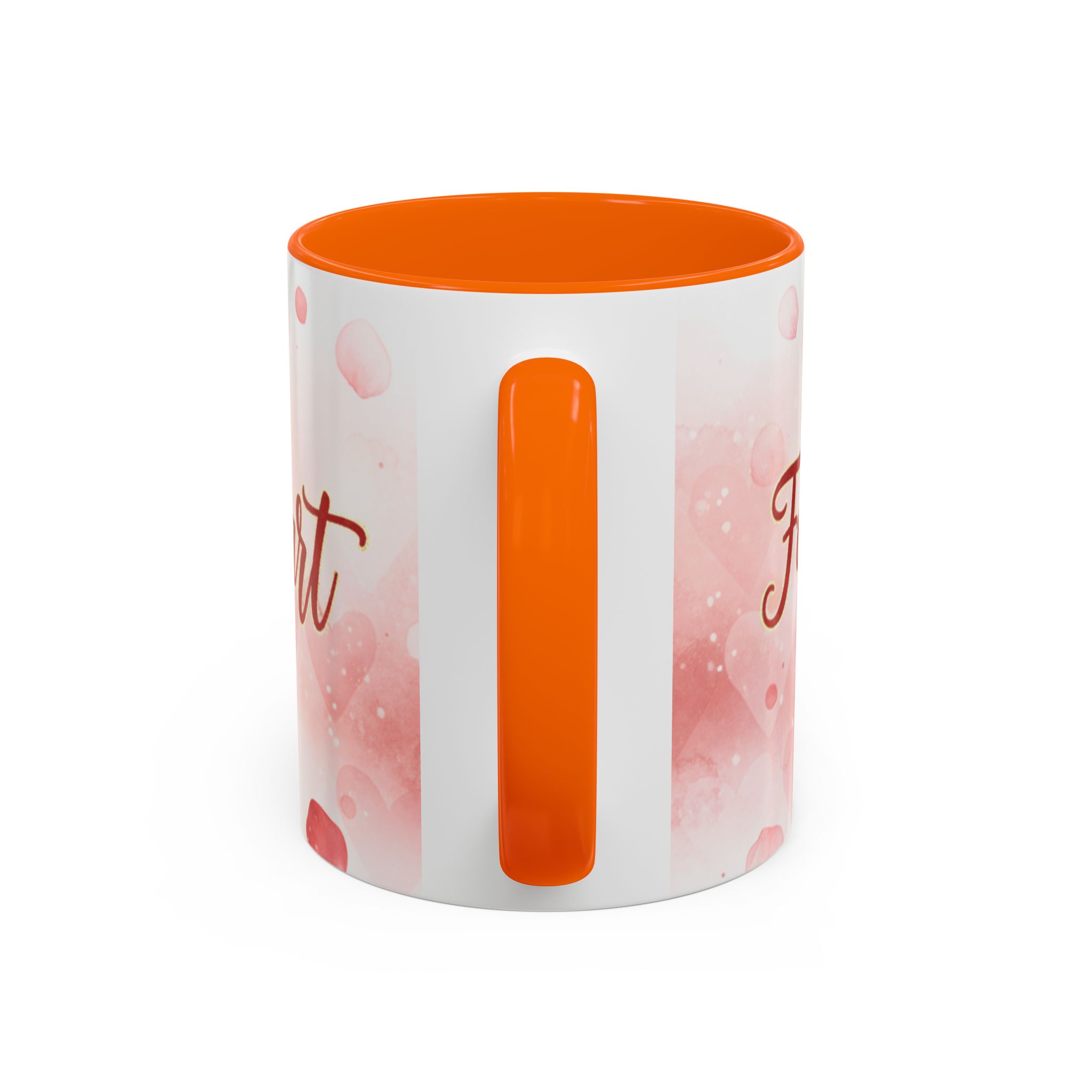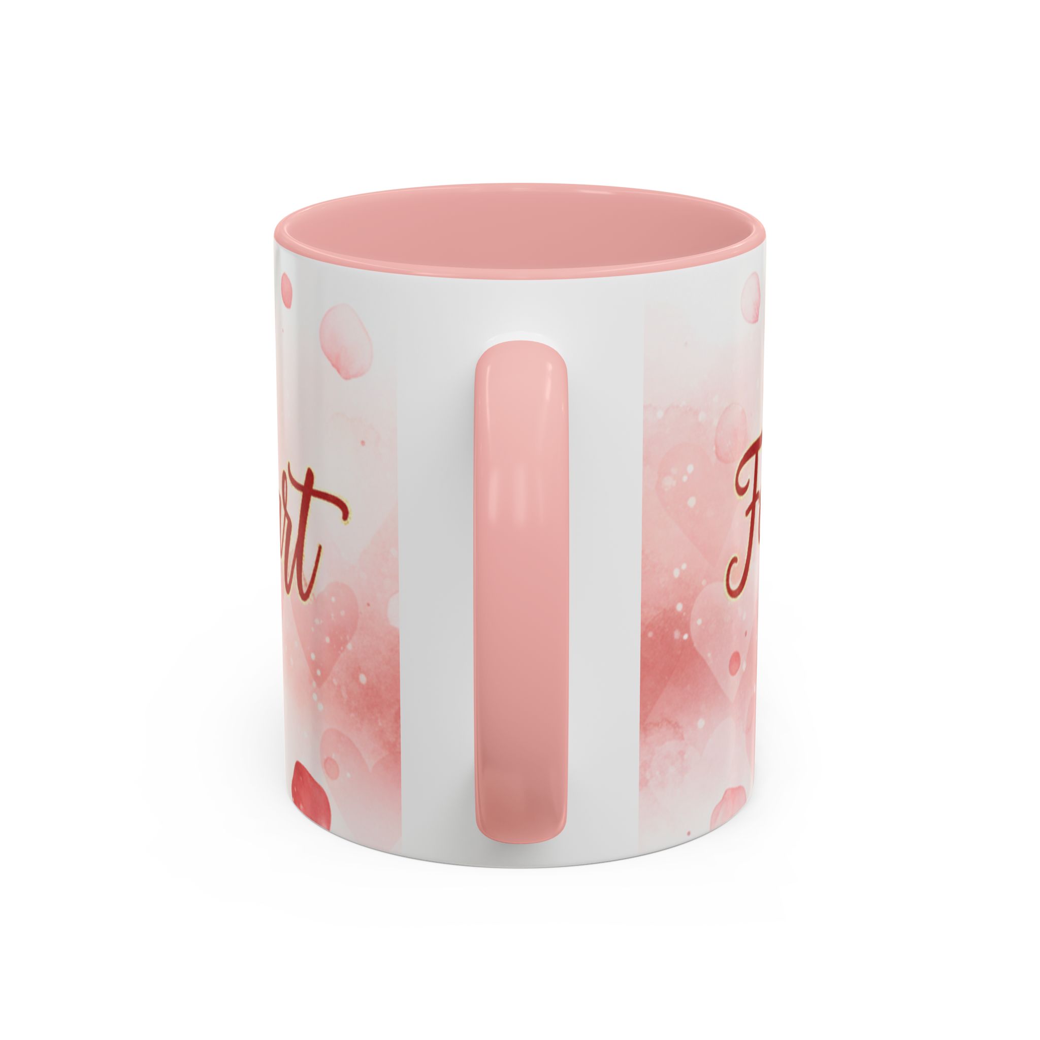 Morning light through the kitchen window. Warm ceramic in your hands. This two-tone coffee mug carries soft blush watercolor hearts and a flowing script that whispers of fond memories and quiet affection. It brings a gentle, intimate mood to everyday sips — whether it’s a slow weekend latte or a quick midweek pick-me-up. The colored interior and handle give it a modern, eye-catching pop against the glossy white exterior, while the durable print keeps the artwork bright through daily use. Use it for cozy mornings, heartfelt conversations, or as a small token to mark an anniversary or thoughtful moment between loved ones.