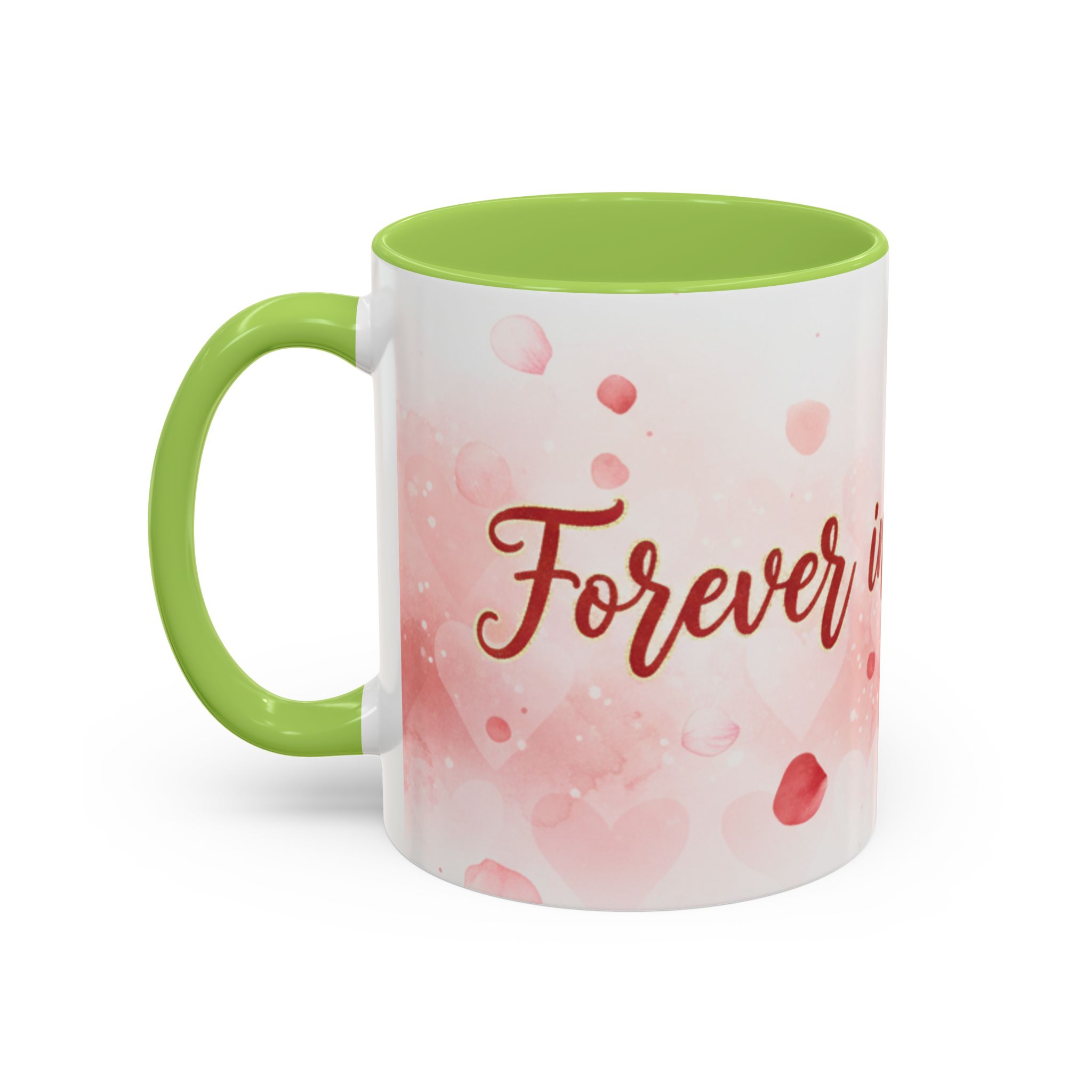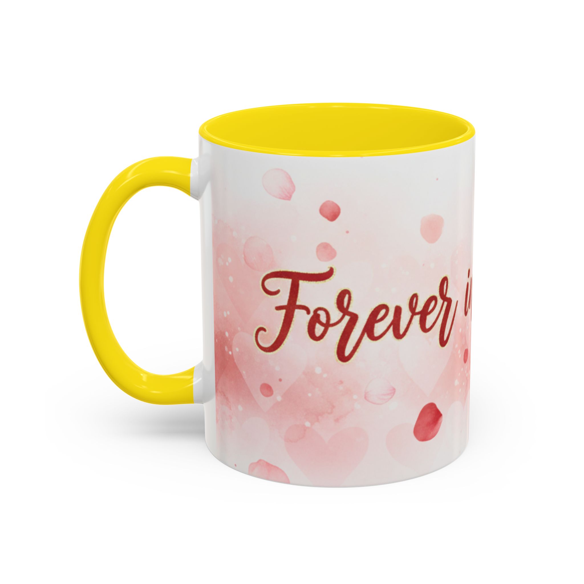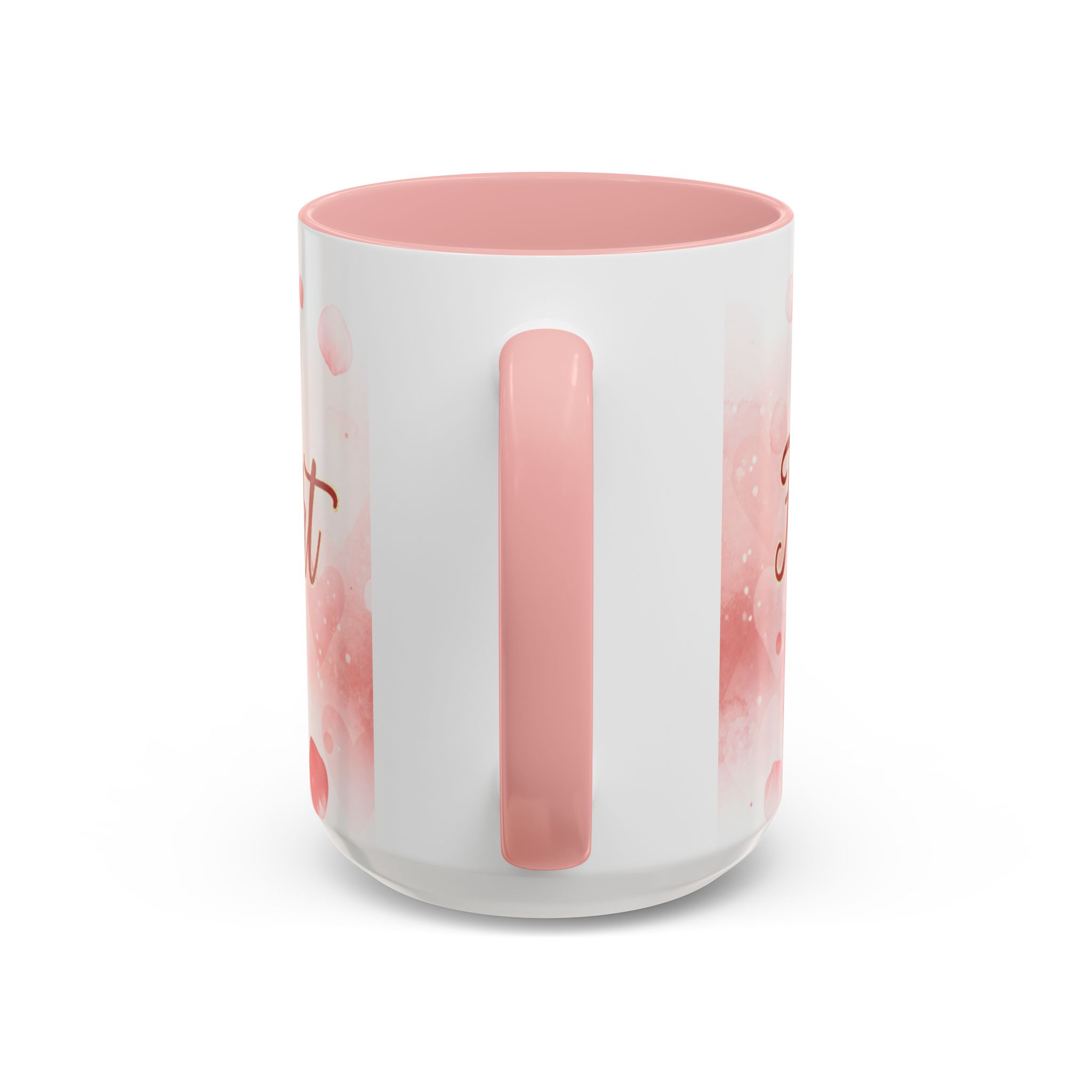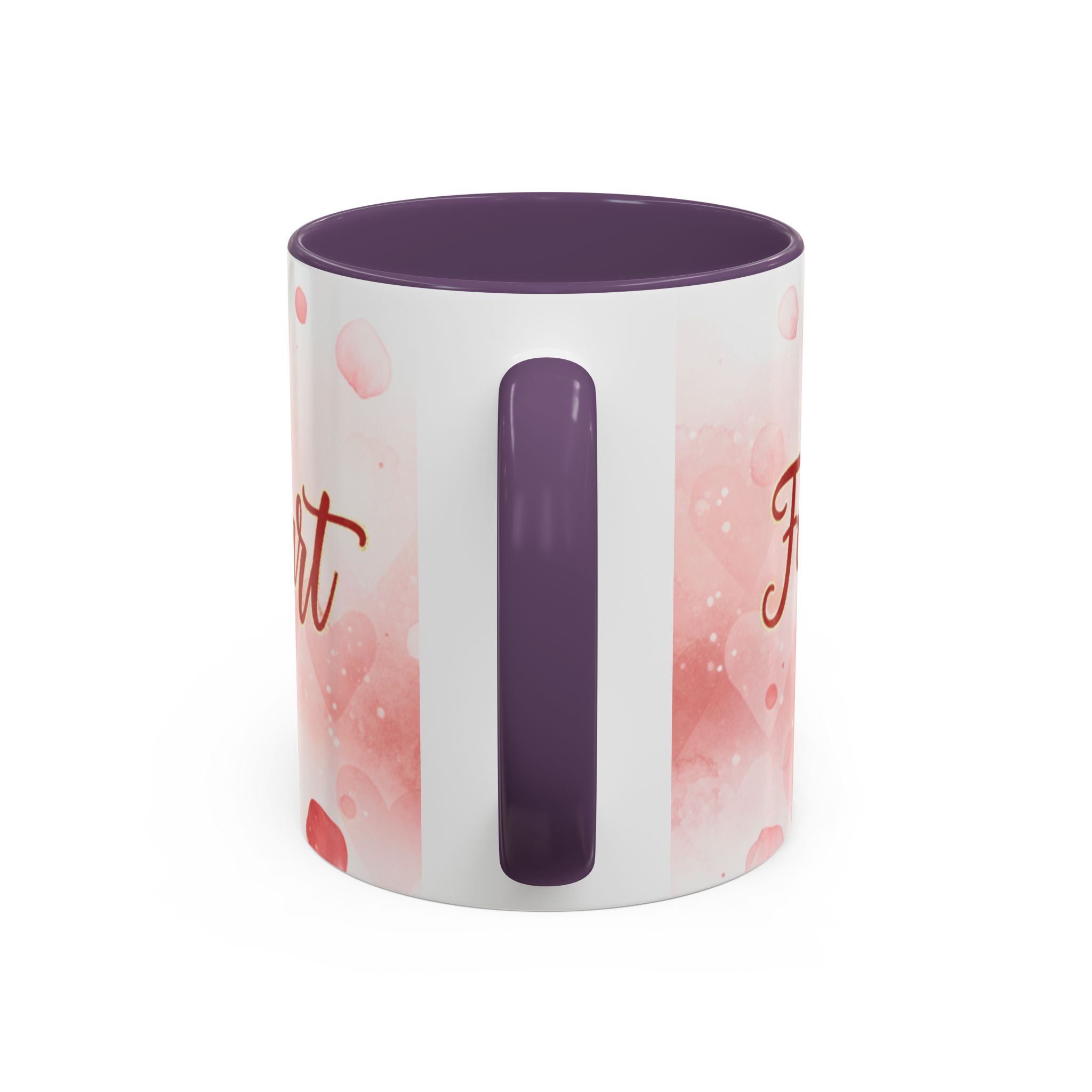 Morning light through the kitchen window. Warm ceramic in your hands. This two-tone coffee mug carries soft blush watercolor hearts and a flowing script that whispers of fond memories and quiet affection. It brings a gentle, intimate mood to everyday sips — whether it’s a slow weekend latte or a quick midweek pick-me-up. The colored interior and handle give it a modern, eye-catching pop against the glossy white exterior, while the durable print keeps the artwork bright through daily use. Use it for cozy mornings, heartfelt conversations, or as a small token to mark an anniversary or thoughtful moment between loved ones.