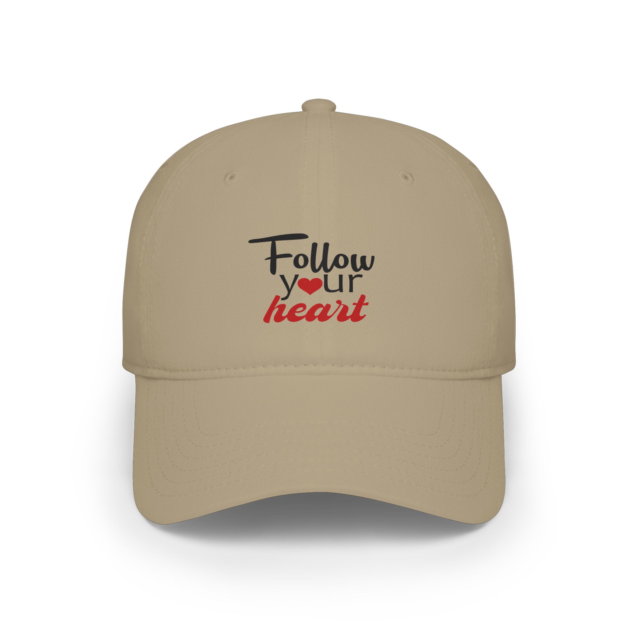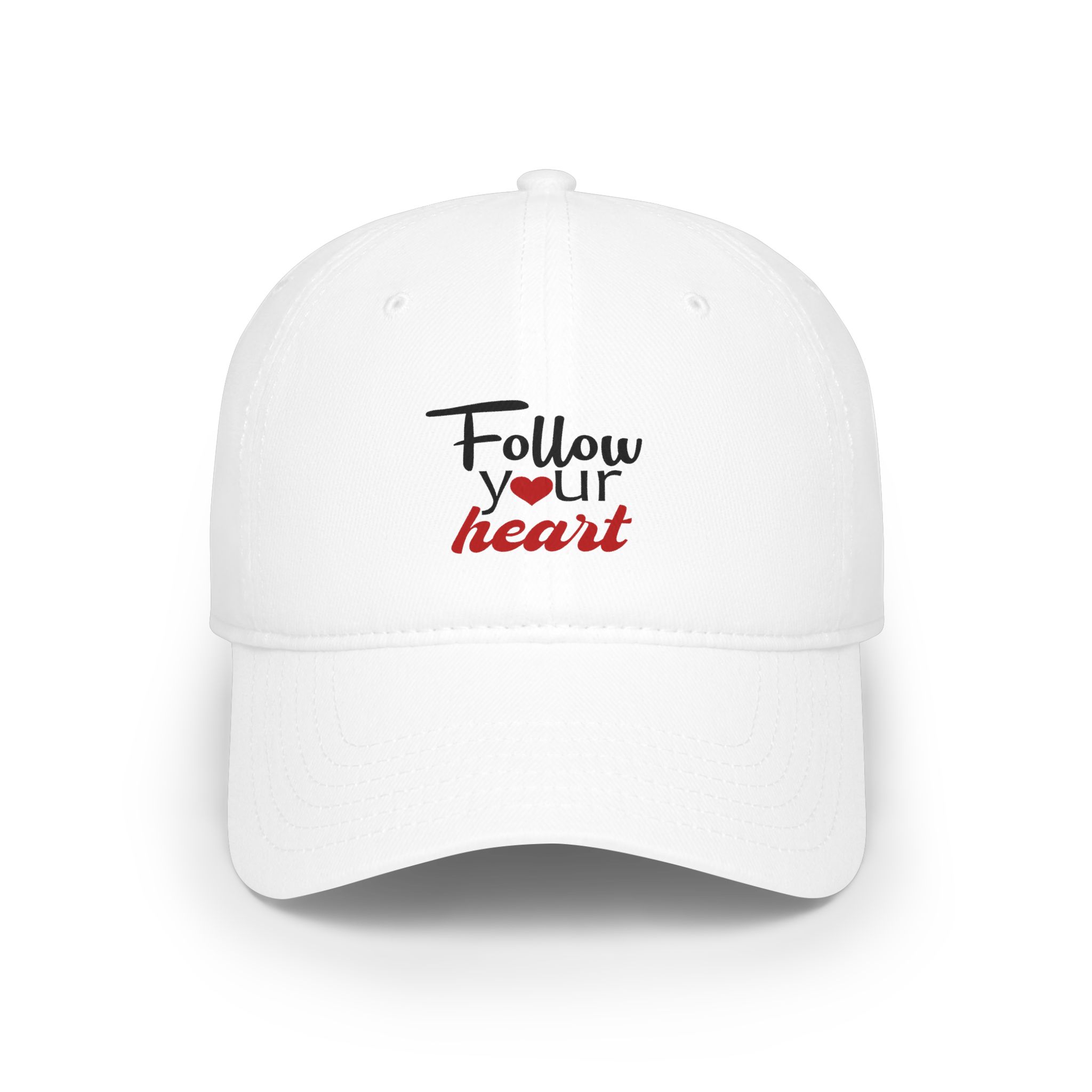 “Spread love this Valentine’s with our ‘Follow Your Heart’ baseball hat. Featuring a vintage, slightly distressed design, this unisex hat adds a timeless, worn-in look to any outfit. Reinforced stitching and covered inside seams keep the cap feeling sturdy while the Velcro® strap lets you fine-tune the fit. Wear it on slow morning walks, errands around town, and it’s comfortable for all-day wear, making it perfect for casual outings, outdoor adventures, or as a thoughtful Valentine’s gift for someone special.”.