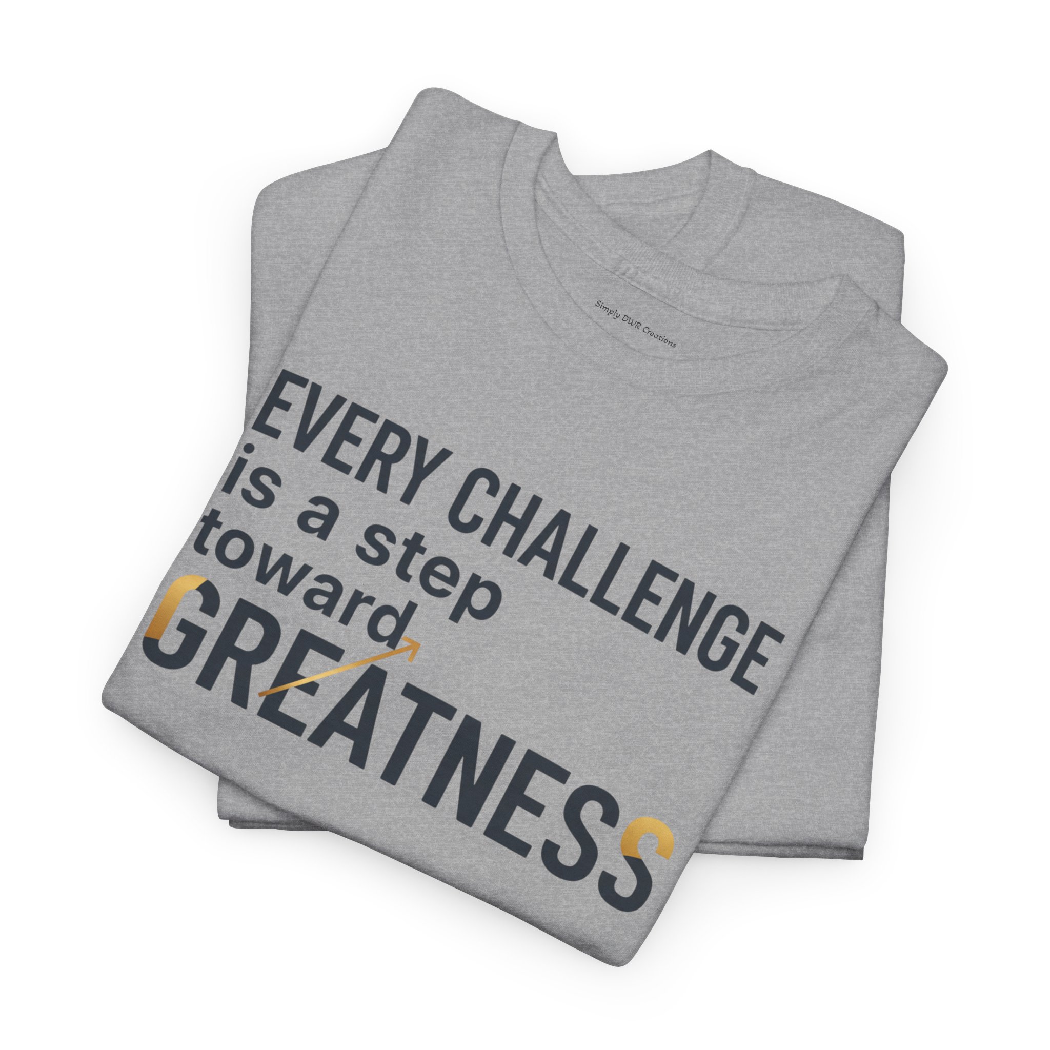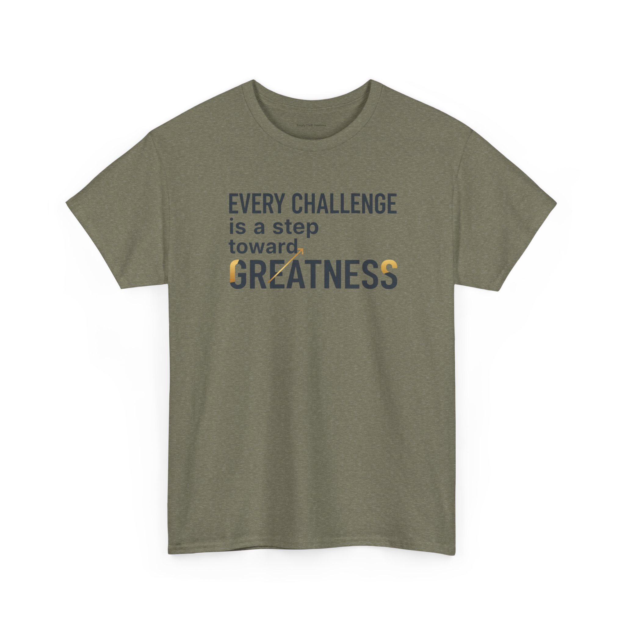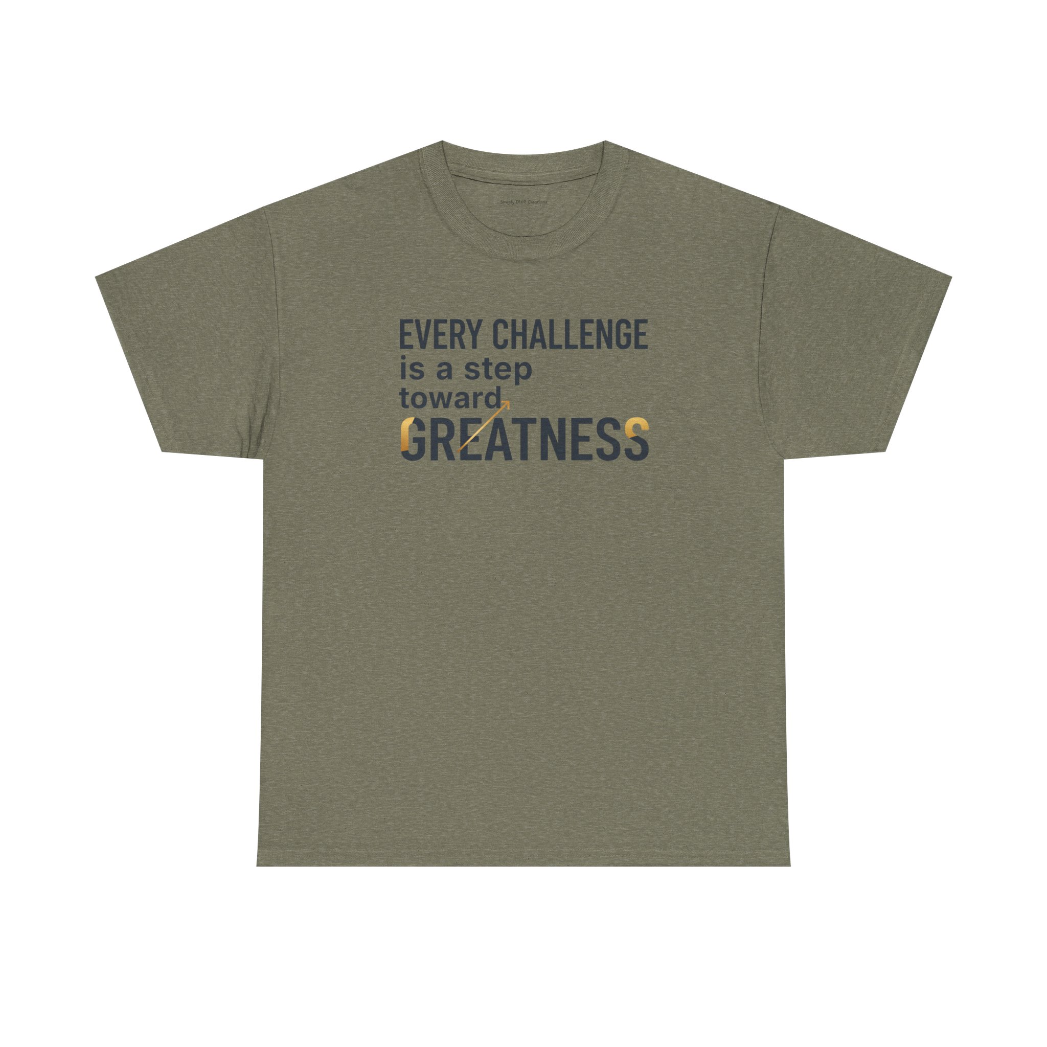 Light, clean, and quietly motivating — this cotton tee carries a small but steady message: every challenge moves you forward. The soft, midweight fabric sits comfortably against the skin while the classic crew neckline and relaxed fit let you layer it or wear it solo. The understated front print uses crisp typography with a touch of warm color to highlight the word “GREATNESS,” so the design reads like a personal reminder rather than loud branding. Wear it on training days, long commutes, or slow Sunday mornings when you need a gentle nudge to keep going.