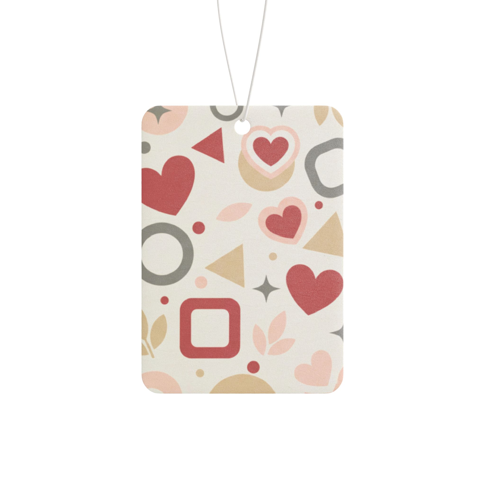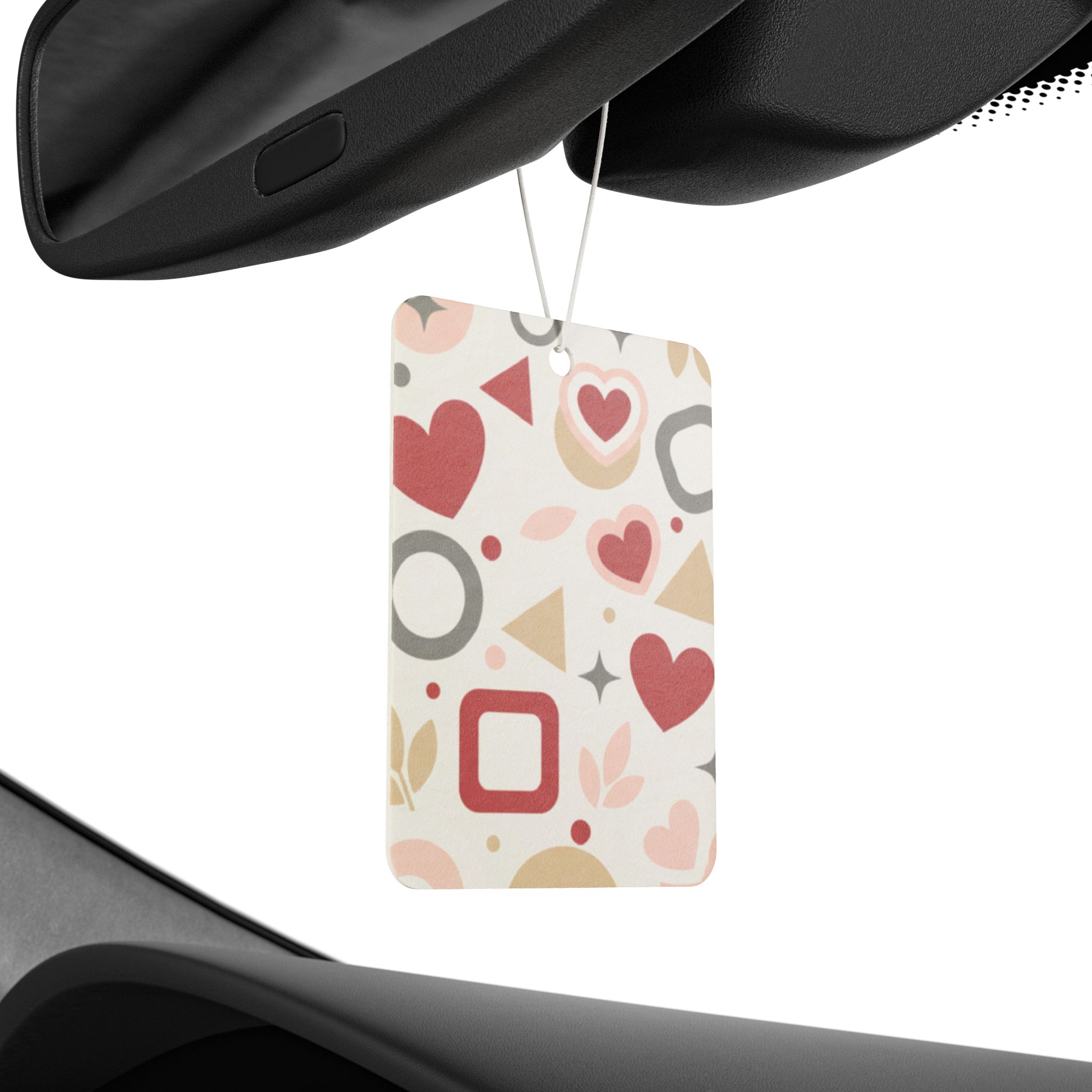 A small, fragrant air freshener that brings a moment of calm and clarity to every drive. Printed on sturdy 80 pt. paper board with the same playful geometric-and-heart design on both sides, it hangs easily from the rearview mirror and fills the cabin with your choice of scent: crisp New Car with green fruit and warm leather notes, evergreen Pine with balsam fir and herbaceous greens, or brisk Black Ice with zesty lime and pineapple. It’s made to sit quietly in the car, refresh the space, and add a cheerful visual touch.