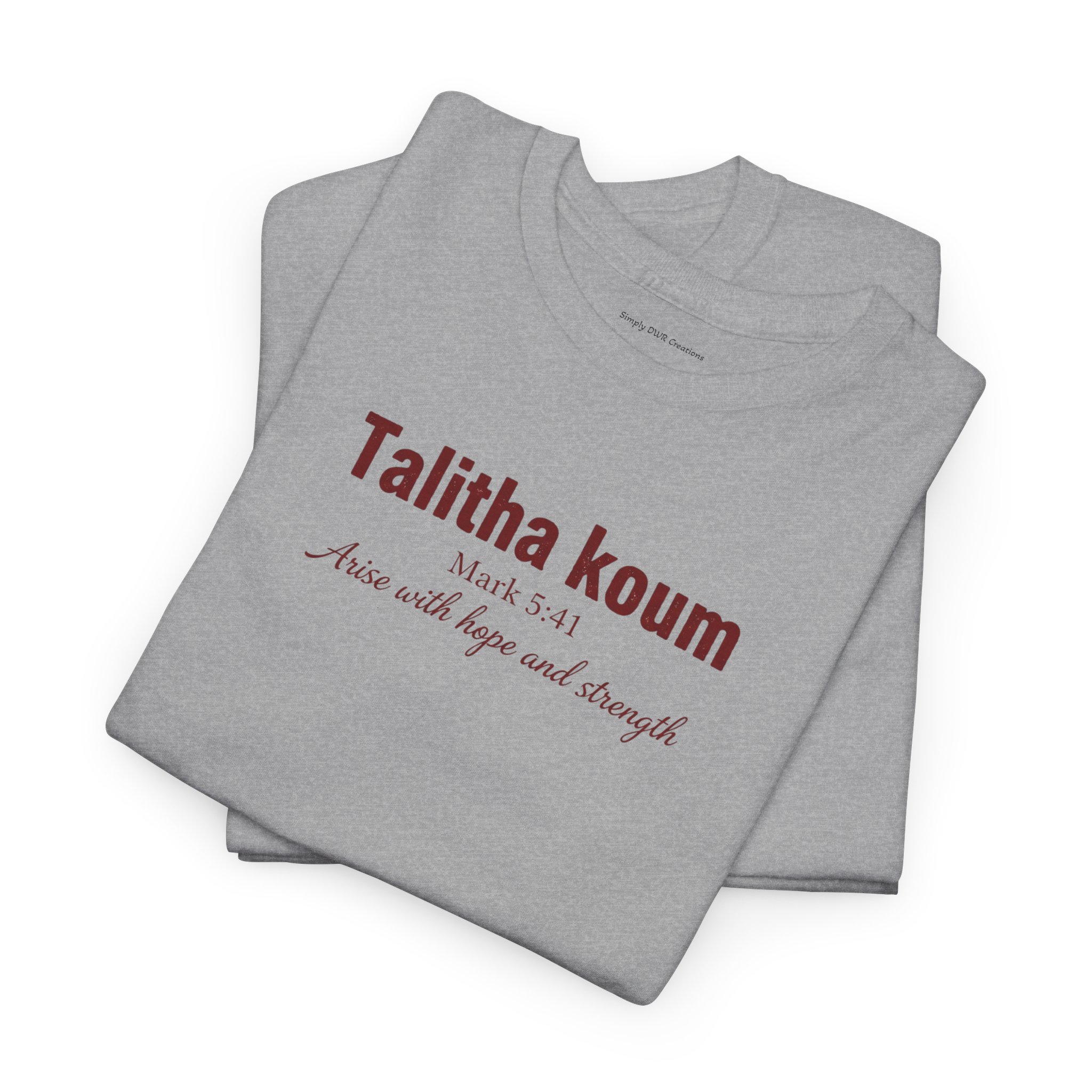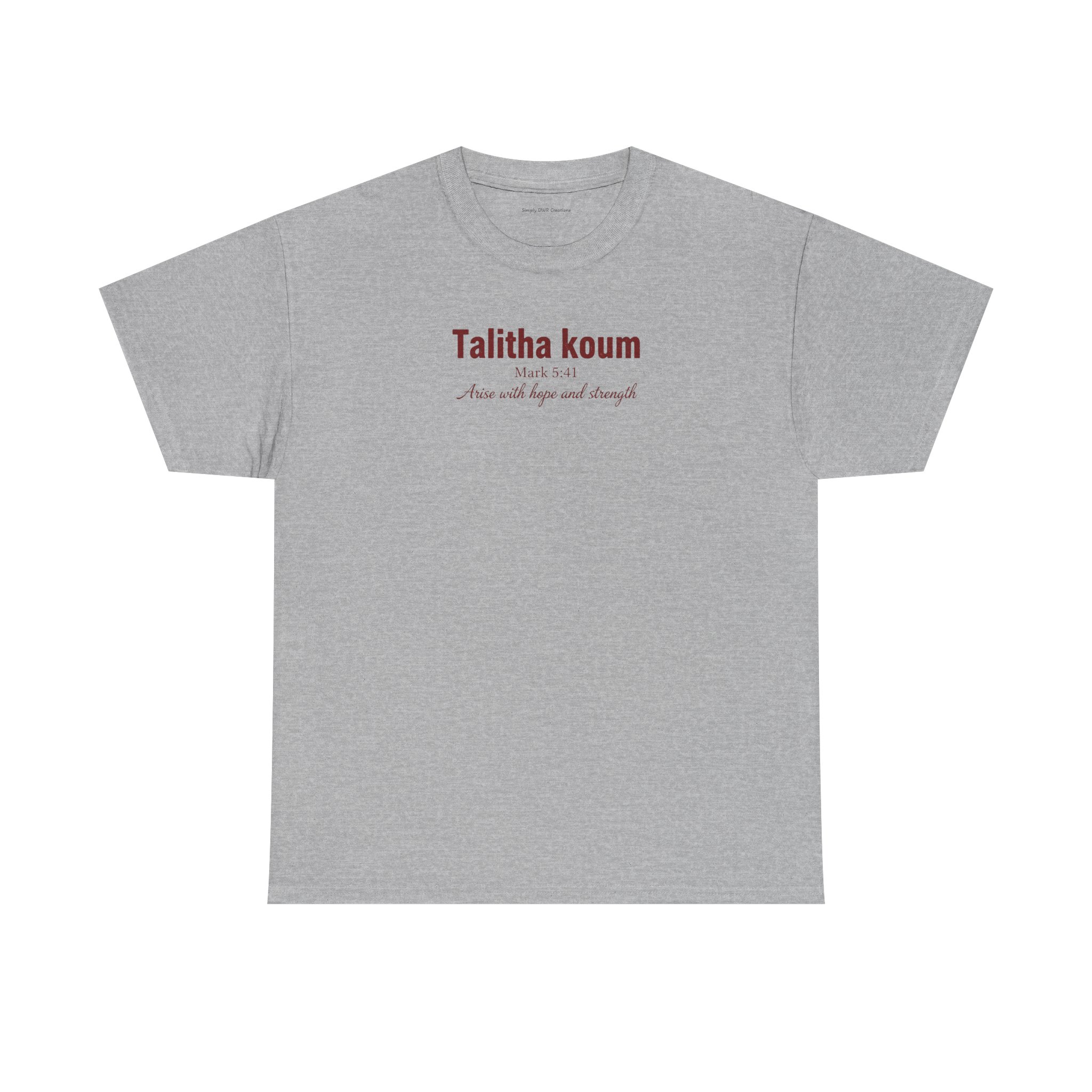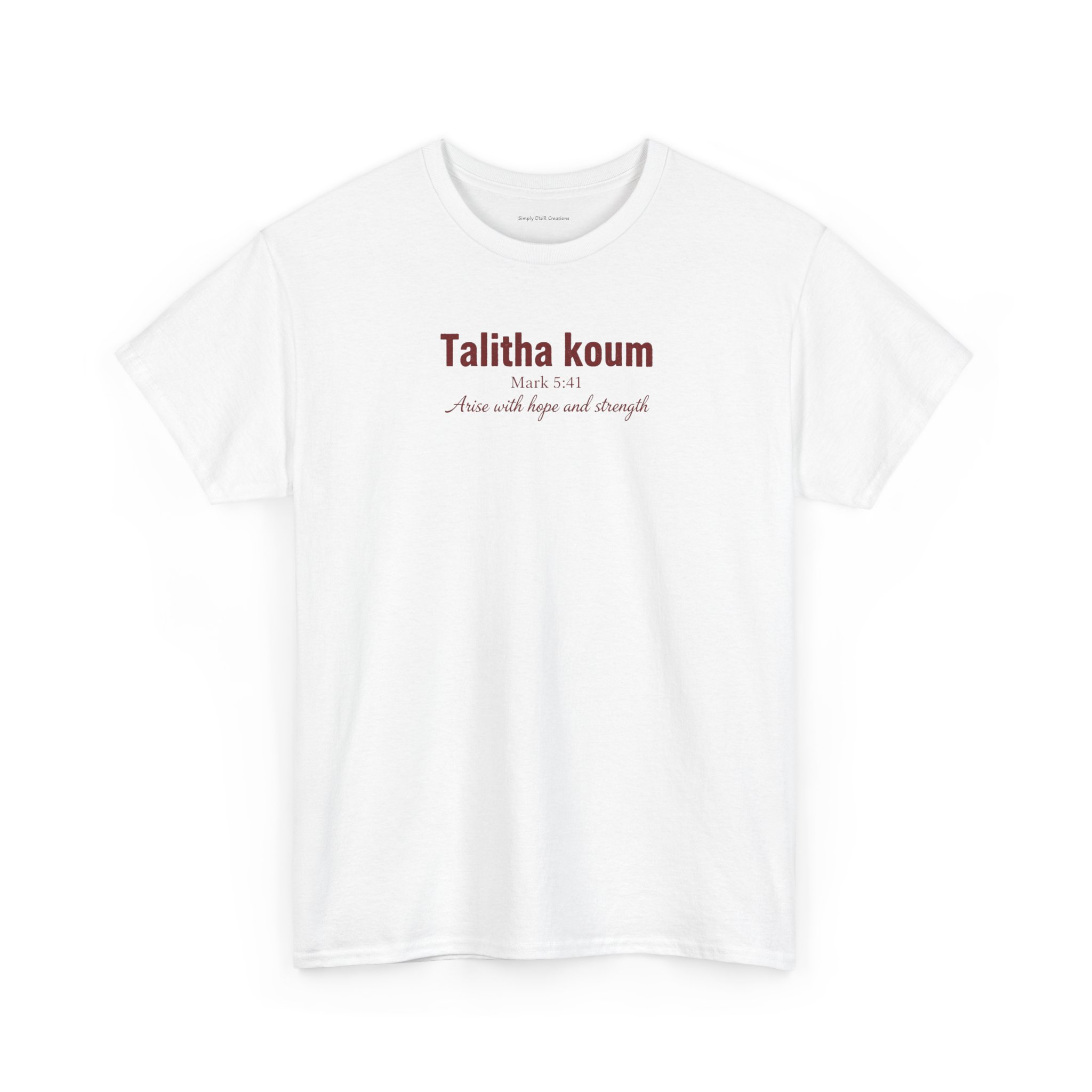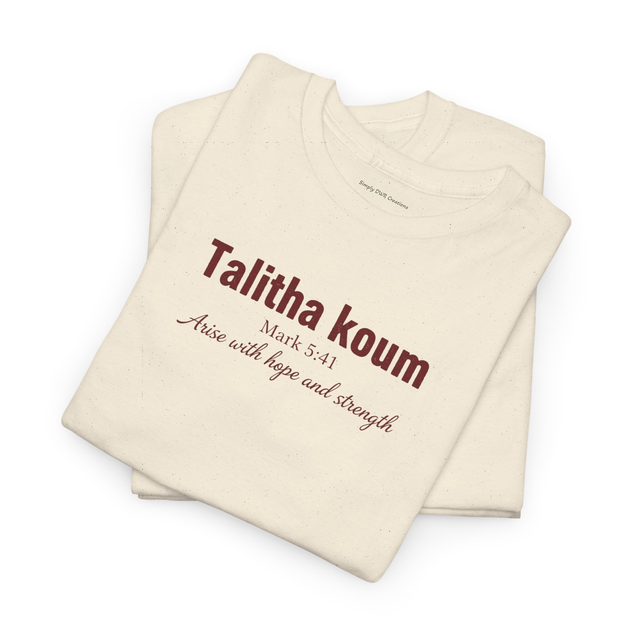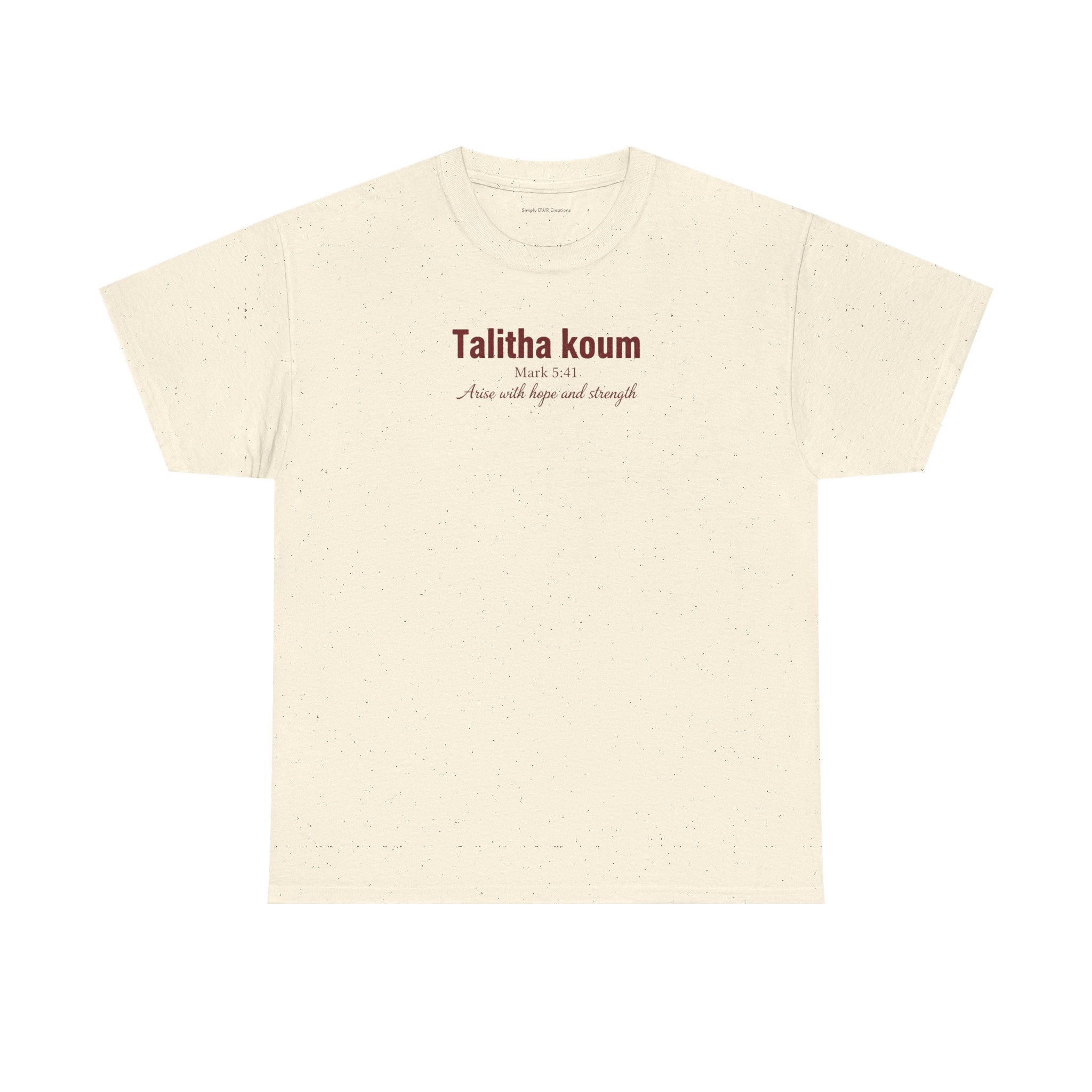 Light, honest, and quietly confident — this classic cotton tee carries a small, elegant chest print that reads like a private mantra. It sits relaxed across the shoulders and lays flat at the neckline, letting the subtle typography do the talking. Wear it on slow mornings, while running errands, or layered under a jacket for a low-key, thoughtful look. The slightly textured natural fabric (with its authentic flecks) and tear-away label keep things comfortable and uncomplicated. This is for people who appreciate simple design and garments that age with stories, not trends.