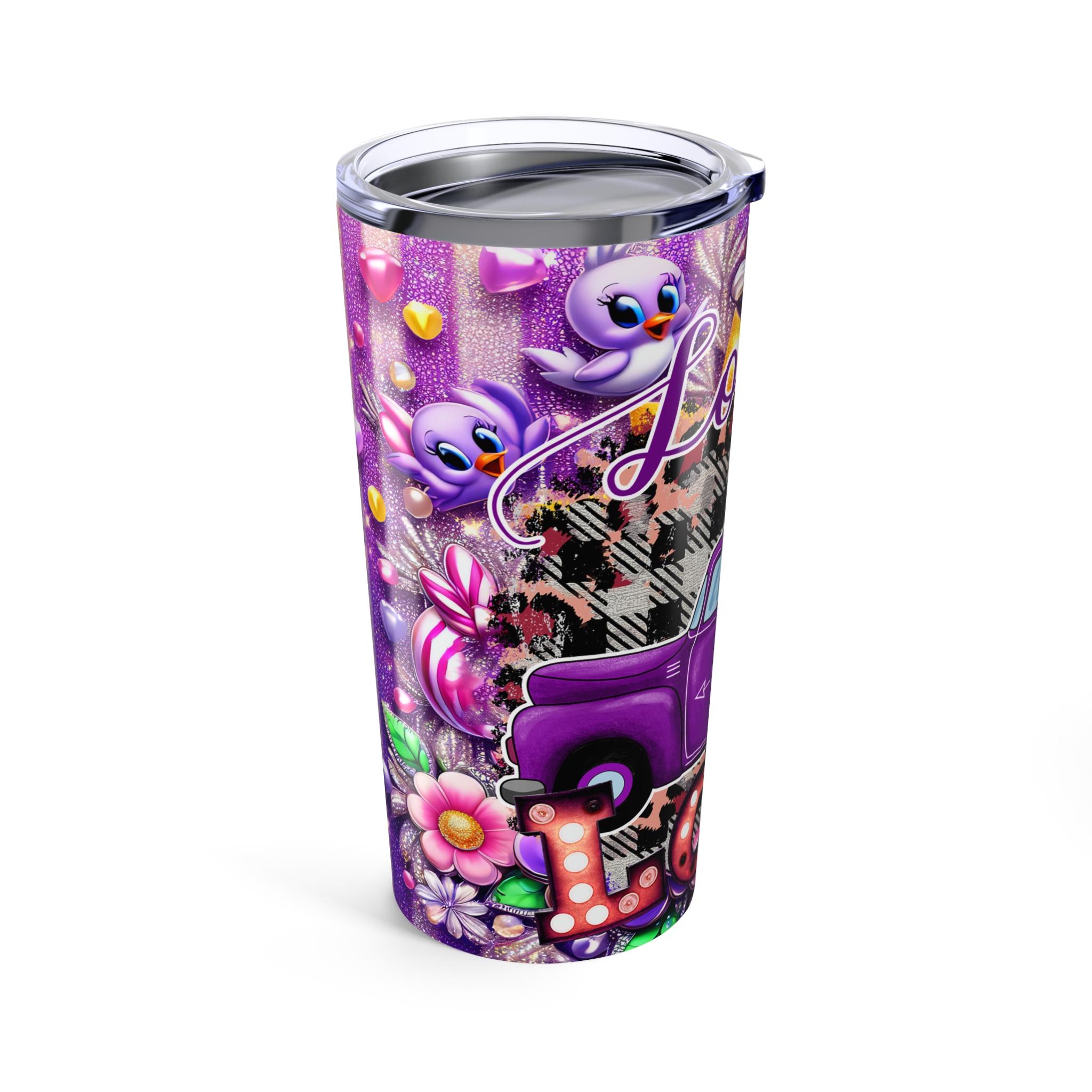 .: Vacuum insulated steel body with a clear push on lid with a rubber gasket
